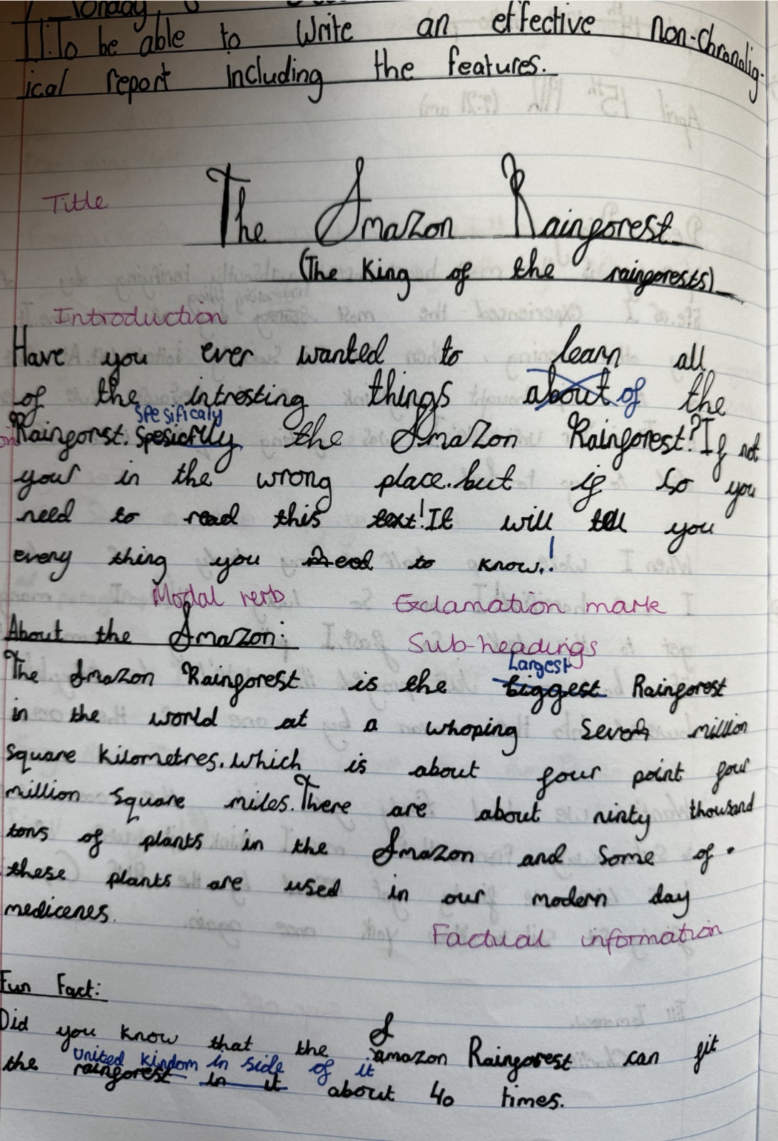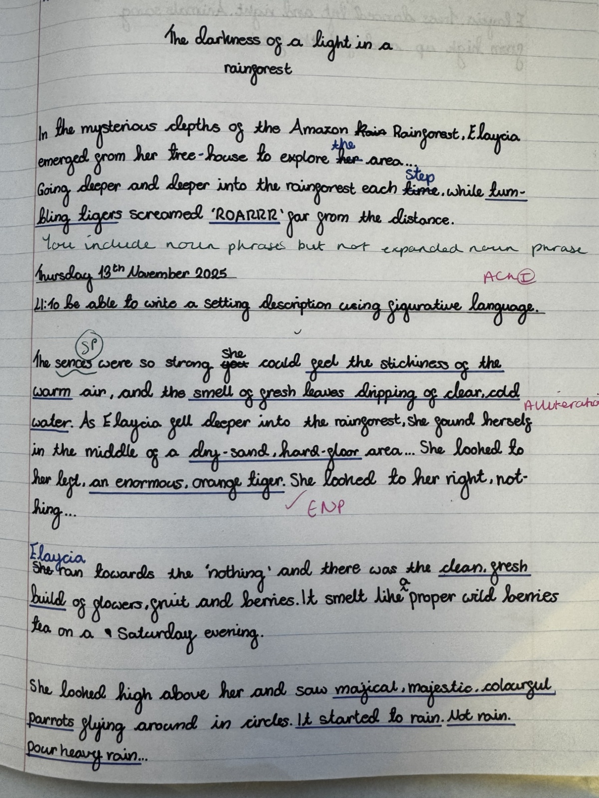 Please see below some examples of the childrens SPAG (Spelling, Punctuation and Grammar)