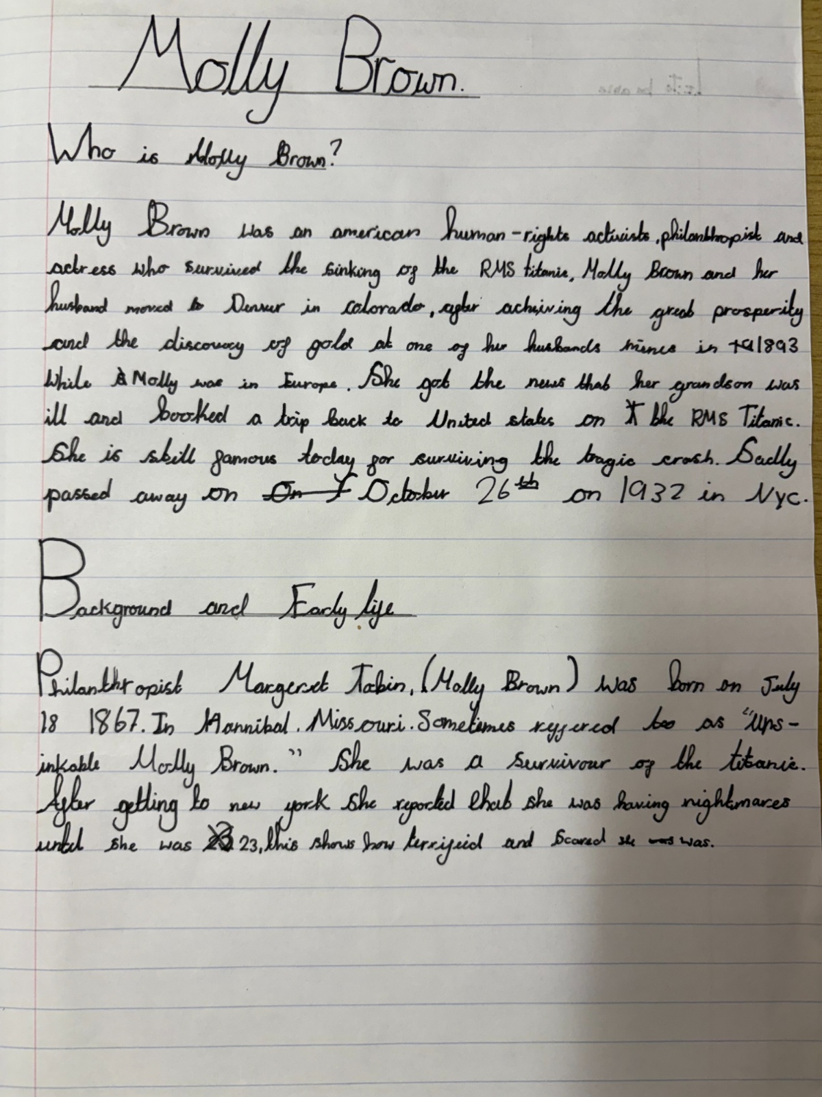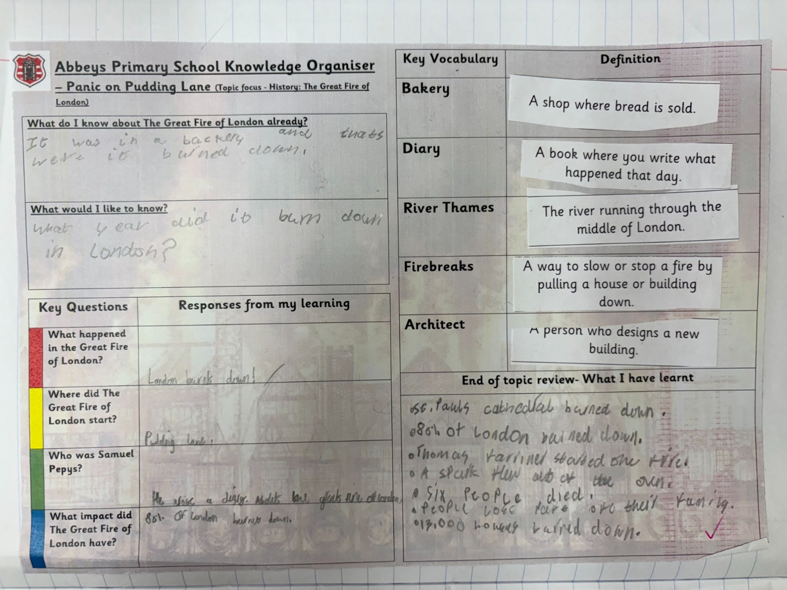 Please see below some examples of the Children's work during History and Geography lessons