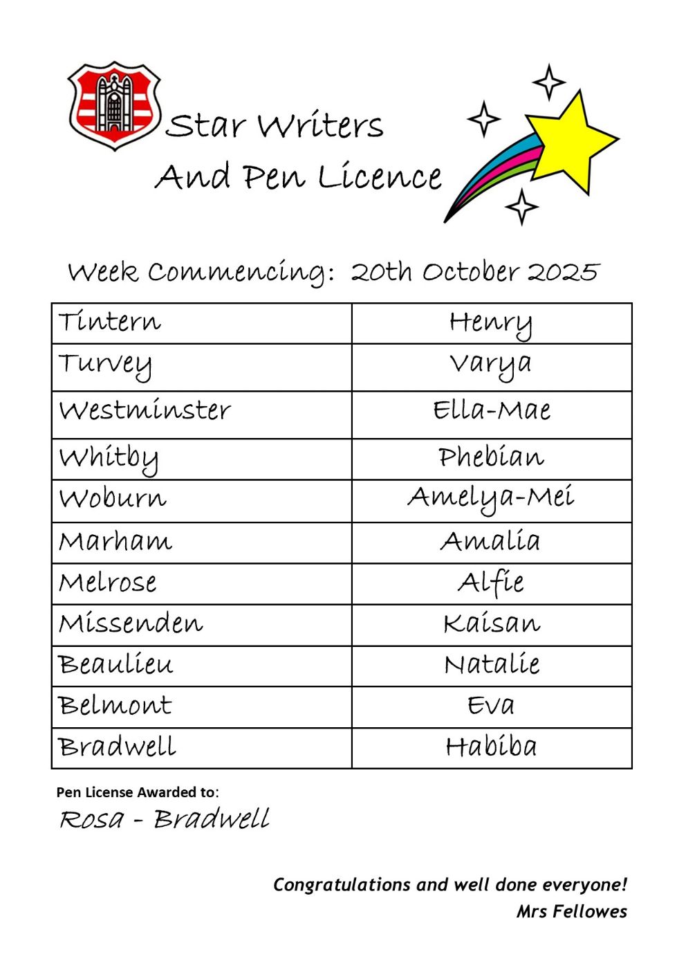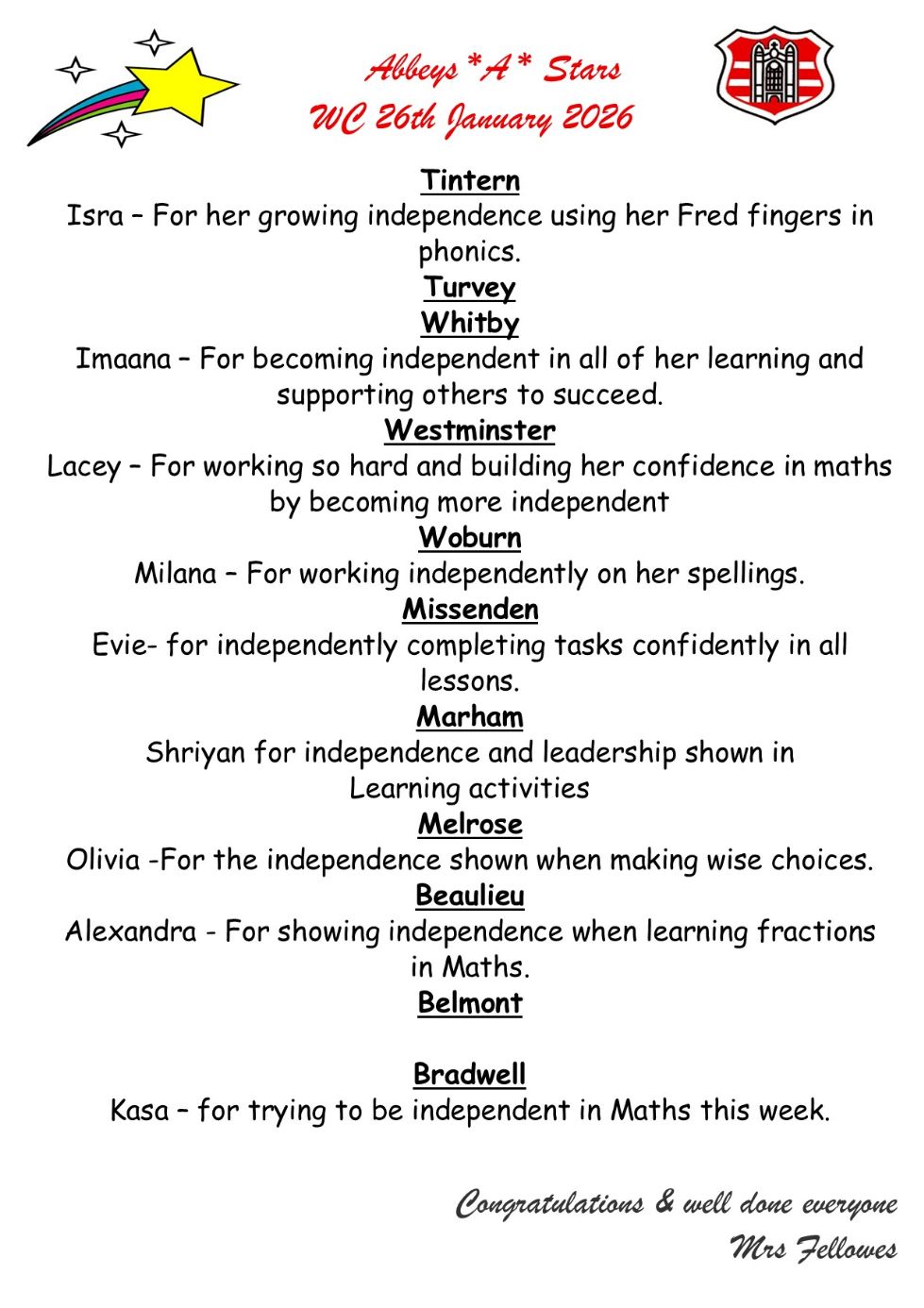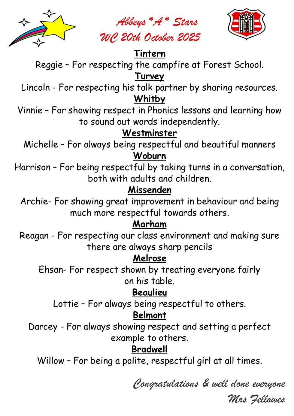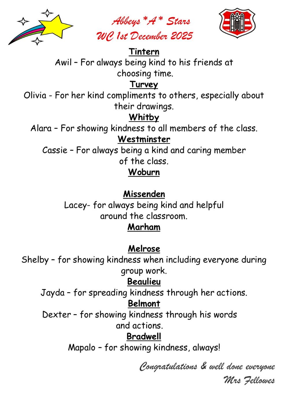 Abbeys Primary School always like to recognise the children's achievements whether they are academic or personal. Each Friday Assembly is our opportunity to share these achievements as a whole school and the children who are 'Abbeys A Stars' that week are rewarded with a book of their choice from the wonderful selection on display. Each week we recognise our 'Star Writers' and their achievements are rewarded with a special 'writers' pencil.
